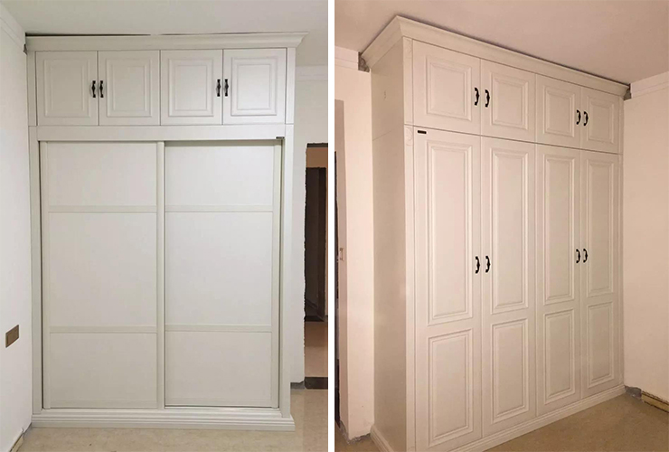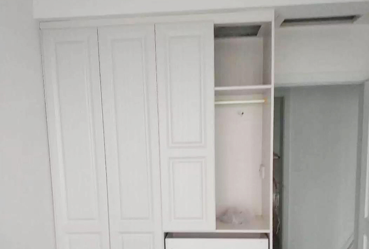 右图错误位置:左侧没加收口板,墙面与衣柜间留出了空隙。