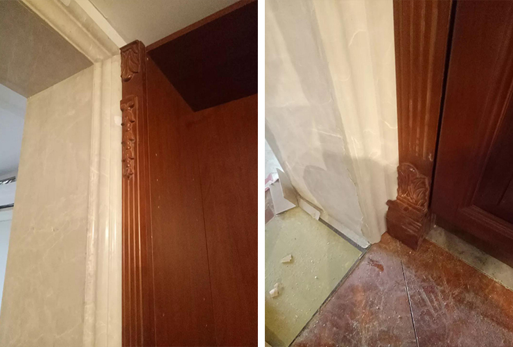 解决办法:欧式门型即使客户不做罗马柱也要必备40-80mm的收口条。