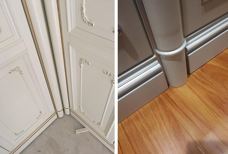 解决办法:踢脚板内退,或者加厚罗马柱平板位